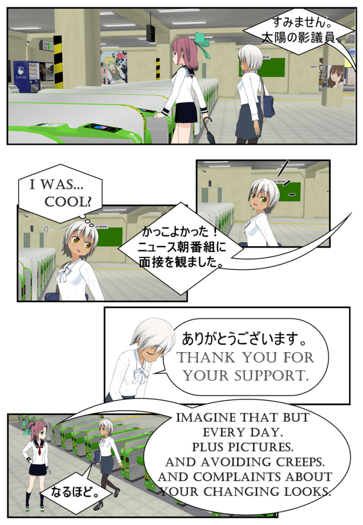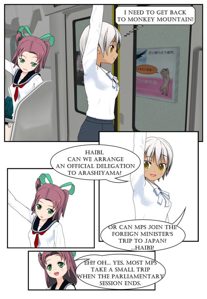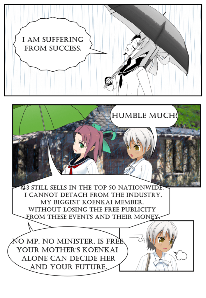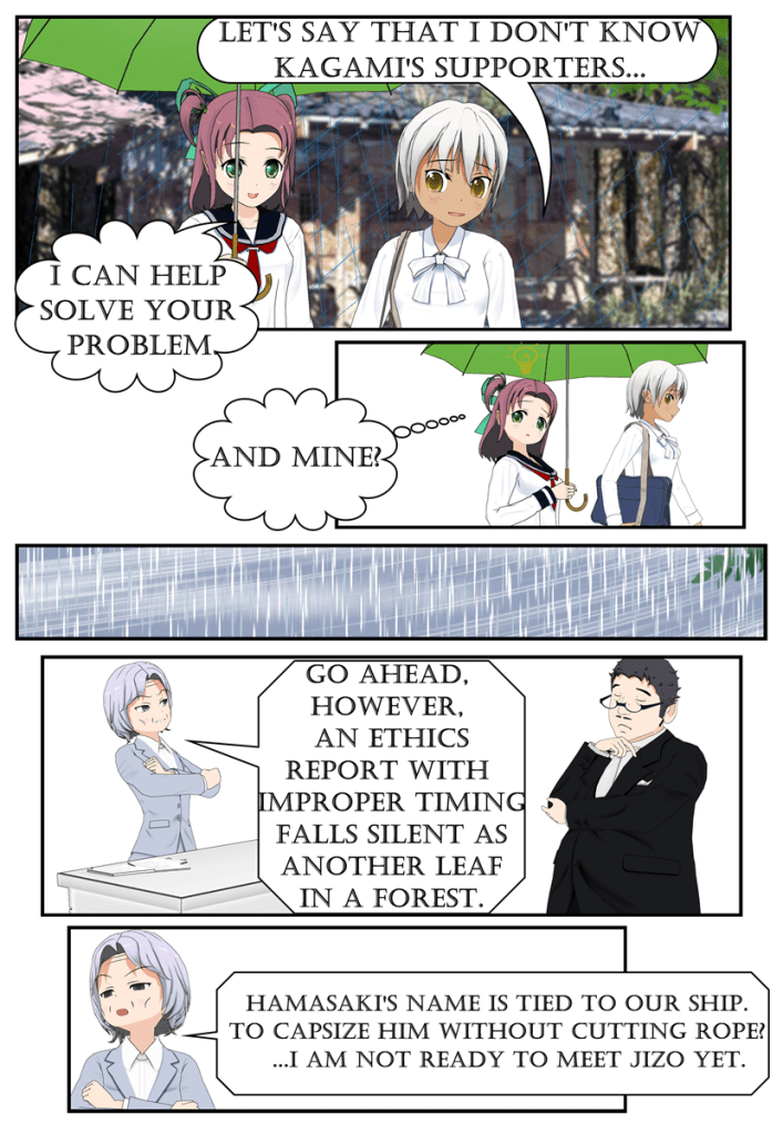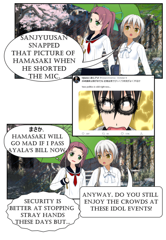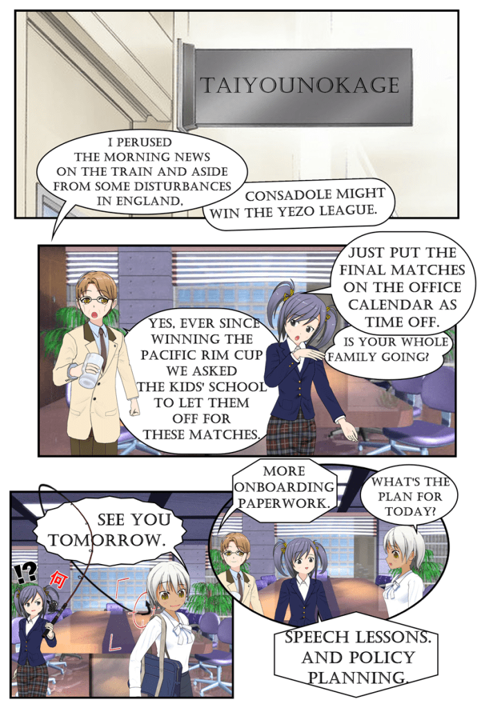The gang is up and on the way into the office after the prior day’s hectic political fight to out-speed Hamasaki to drop a new rural revitalization bill.